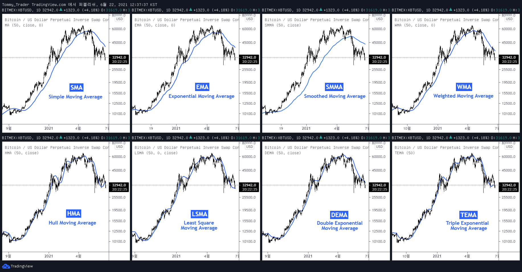 한눈에 보는 여러 종류의 이동평균(Moving Average)의 비교와 나에게 맞는 이동평균 사용하기