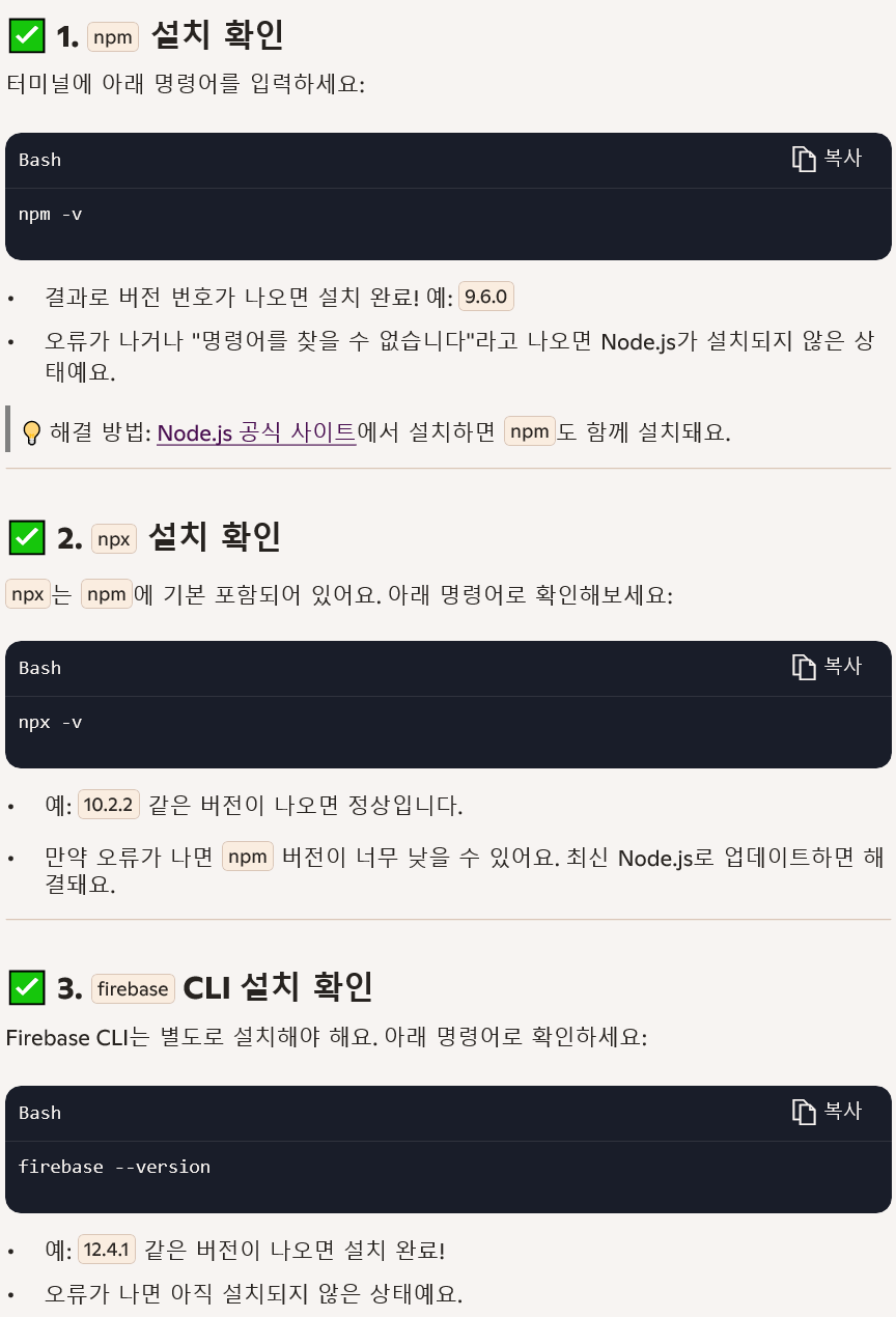 👨💻 npm, npx, firebase가 설치되어 있는지 확인하는 방법을 아주 쉽게 설명드릴게요.
