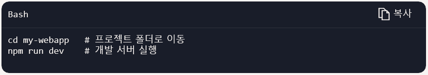 ✅ 반드시 해당 프로젝트 폴더로 이동한 뒤에 npm run dev를 실행해야 합니다.