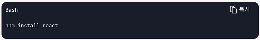 이 명령어는 react라는 라이브러리를 설치해서 내 프로젝트에서 사용할 수 있게 해줘요.